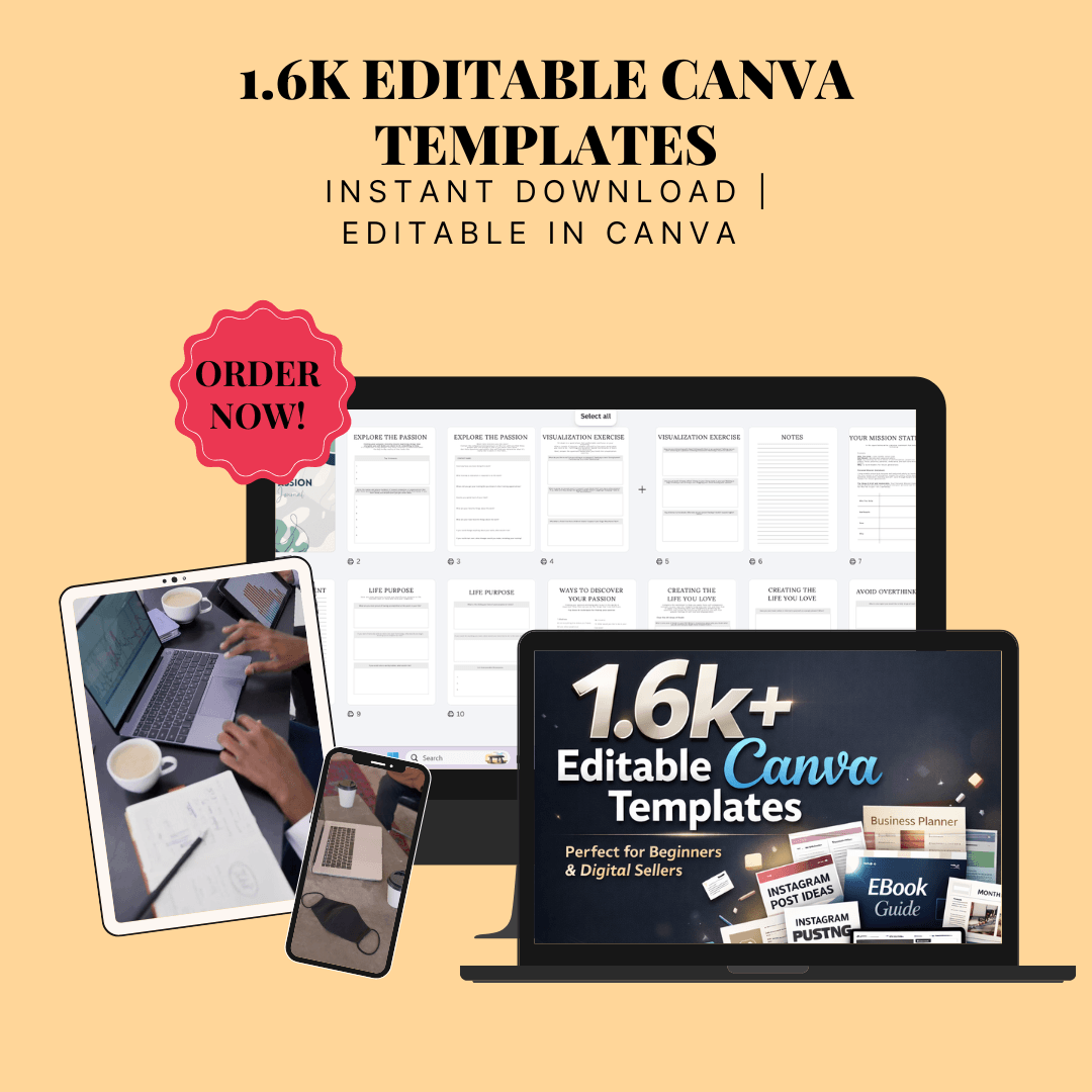 1,600+ fully editable Canva templates ready for social media, marketing, and business use.